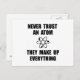 Si eres un nerd de la ciencia inteligente o un geek de la biología, entonces nunca confías en un átomo. Lo componen todo. Echa un vistazo a este divertido diseño personalizado en tés, camisetas, tazas, pijamas, regalos y prendas de vestir.