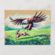 Postal Atrapando conejo en el dibujo de pasto pastoral