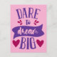 Tarjeta postal Atrévete a Soñar en Grande. Texto Personalizado Fácil Disponible. Diseños alegres, felices, inspiradores y motivadores. Transfiere este diseño a más de 1000 productos de Zazzle, utiliza la función 'Transferir Diseño a Producto' directamente encima de la descripción del producto. ¡Gracias!
