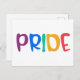 Celebra el Orgullo con esta tarjeta postal vibrante y colorida, que incluye la palabra "Orgullo" en letras audaces inspiradas en el arcoiris. Este diseño es perfecto para propagar amor, unidad y positividad, ya sea que se lo envíen a un amigo o lo usen como un aguijón. El mensaje simple pero poderoso lo hace ideal para el Mes del Orgullo, eventos LGBTQ+, o cualquier momento que quieras mostrar tu apoyo a la inclusión y la igualdad. Una manera alegre y brillante de compartir el orgullo con el mundo.