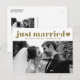 ¡Solo casados! Anuncie su salida o boda con esta postal recién casada. Presenta una tipografía audaz retro dorada con acento cardíaco. Personalice agregando sus nombres, fecha de boda, mensaje y fotos. Esta tarjeta recién casada es perfecta para cualquier tema boda y temporada. Está disponible como tarjeta plana, postal y plegada.