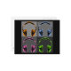 Cuatro audífonos Pop Art, cada par de audífonos se muestra dentro de un cuadrado, cada uno con un tono diferente de gris. Los audífonos son de tonos retro de naranja, azul, rosa y verde con sombras negras que definen las formas y contornos de los audífonos. El diseño de los audífonos de arte pop tiene un aspecto retro, de la vieja escuela, y es ideal para los amantes de la música, que prefieren escuchar su música sin interferencia del mundo exterior y los DJs que aman girar su vinilo. Visita la tienda ElectricPopSpot y navega por todos nuestros increíbles diseños de arte pop con temática musical! ElectricPopSpot - ¡Transformar la cultura pop en arte pop!