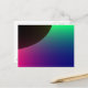 Esta Postcard presenta una imagen creada digitalmente que se asemeja a la media luna de un planeta oscuro rodeado por una aurora cósmica de verde, azul, púrpura y rosa.