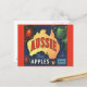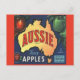 Las manzanas australianas de Tasmania son una etiqueta vintage de la caja de fruta de 1933 . Mapa de Australia en el centro con manzanas rojas y verdes a su alrededor.
