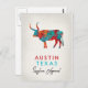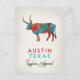 Diseño luminoso y colorido de Austin Texas, aprobado al 100% por Longhorn. Colores cálidos de rojo, naranja, turquesa y agua en un estilo acuático sobre un fondo neutro.