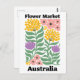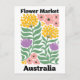 Celebrate the breathtaking and unique flora of the Land Down Under with this vibrant Australia Flower Market design. This modern illustration features a lush, eclectic arrangement of golden orb-like clusters, delicate pink wildflowers, and bold purple protea-style blooms.