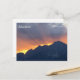 Postal con foto de puesta de sol sobre alpes austríacos.