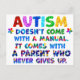 Mensaje inspirador de “El AUTISMO No Viene Con un Manual. Viene Con un Padre Que Nunca se Rinde” para apoyar a orgullosos padres de niños con Autismo.