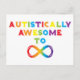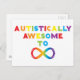 Diseño hecho con amor por la conciencia del autismo. Las letras arcoiris forman la frase 'Autistically Awesome To Infinity' con un símbolo infinito.