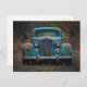 Esta impactante imagen muestra una vista frontal de un viejo auto vintage de brillante azul, su acabado una vez suave ahora envuelto en un rico tapiz de óxido y patina. El vehículo abandonado, rodeado de un entorno salvaje y vegetado, evoca la nostalgia, la historia y el encanto inolvidable de los lugares olvidados.