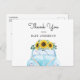 ¡Gracias a sus invitados por celebrar a la mamá! Esta postal de agradecimiento incluye un coche azul acuático y girasoles. Personalice su información o haga clic en "Haga clic en el personalizar más adelante" para editar estilos de fuente, tamaño y colores.