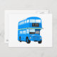 Ilustracion de un autobús azul brillante de dos pisos. Fácilmente personalizar y elige tu propio color de fondo o agrega texto. Imagen disponible en varios regalos y productos.