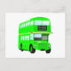 Ilustracion de un autobús verde brillante de dos pisos. Fácilmente personalizar y elige tu propio color de fondo o agrega texto. Imagen disponible en varios regalos y productos.