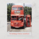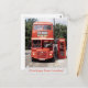 Postal de 'Saludos desde Londres' con foto en color del ya histórico autobús de doble decker rojo 'routemaster' y también una histórica caja telefónica, fotografiada en Park Lane en el centro de Londres en 1998