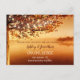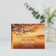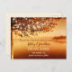 Una carta festiva y romántica Salven la Fecha con un árbol con luces de cuerda que dan a un lago nebuloso. Hermoso para una celebración de otoño o otoño.