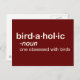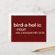 Este diseño divertido de birder tiene formato de definición que se encontraría en el diccionario. Aquí la palabra es birdásica y la definición es "una obsesionada con las aves". Quizá conozcas a algunos pájaros así, ¡o quizá tú mismo seas un birdholic! ¡Puedes personalizar totalmente este regalo! Añadir texto, cambiar el color, mover el diseño, elegir un estilo diferente - ¡hacerlo propio!