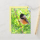 Aquí hay un pequeño pollito con gorro negro con fondo follaje verde y amarillo, uno de los dos pares que visitaron el alimentador el año pasado. Este pequeño pájaro aparece temprano. Se trata de finales de septiembre y la nieve no volará por unas semanas todavía. Los pollos no migran, así que están revisando la disponibilidad de comida antes de que haga demasiado frío y neve. Estos songbirds amigables e inteligentes tienen una amplia gama de chirridos, triciclos, silbidos y melodías. La garganta de gorro negro es más conocida por su llamada de peligro "chick-a-dee-dee-dee". El número de "dee's" corresponde a la percepción de pájaro de la amenaza. La gente tiene de 4 a 6; el búho pigmeo, un depredador de pollos, puede tener más de 20 "dee's". Una vez que este pequeño pájaro inteligente te conozca, normalmente después de un par de visitas a tu alimentador, se detendrá el dee-ing y te recibirá con un chirrido amistoso. Los pollos comerán semillas de girasol de tu mano si eres paciente. Es muy difícil diferenciar a los pollos, tanto hombres como mujeres, aunque el hombre tiene algunas llamadas particulares para él, como una larga "abeja libre" silbada. Los pollos construyen sus nidos en árboles huecos y no les gusta vivir en casas de pájaros. Sin embargo, si pones aserrín en la casa de las aves (especialmente si tienes una forma como un tronco), estos pequeños avioscos vaciarán el aserrín y lo reemplazarán con materiales de anidación. La mujer es la única responsable de recoger los materiales del nido. Esta es una de las pocas maneras de decir si es un chico o un chica - si se le pasa la boca, ¡es un chica! También incuba los huevos sola, y aunque es pequeña, puede poner hasta trece huevos. El macho la alimenta y defiende el nido. Si un depredador se acerca al nido, la hembra puede hacer un ruido de silbido como el de una serpiente para asustar al intruso lejos de sus huevos o pollitos. Cuando los niños nacen, los hombres y las mujeres los alimentan y cuidan. Los pollos son gregarios y a menudo se encuentran en la compañía de otras aves como las margaritas azules, los nuthatches y los pájaros carpinteros. En la tradición autóctona, la garganta es conocida como el narrador de la verdad o el pájaro de la verdad, basado en la leyenda de un viajero al que un varadero advirtió de una emboscada por llamada de un varado. Además, la alarma de peligro distintiva del pájaro permite que otros en la zona sepan que hay alguien en la caza; y, el varadero le dirá a otros pájaros si ha encontrado comida. Los pollos sobreviven a las frías noches de invierno canadienses bajando su temperatura corporal en varios grados. Este estado de letargo es raro en las aves. Sólo se conoce en látigos pobres y algunos colibríes. La garganta es la ave estatal de Massachusetts en Estados Unidos, y la ave provincial de New Brunswick en Canadá. Foto original de la fauna silvestre M Sylvia Chaume, Canadá. ¡Feliz bendición!