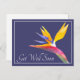 Fotografía impresionante de primer plano de una impresionante flor Ave del Paraíso contra un fondo azul marino. La flor cubre la parte frontal de esta postal que se puede utilizar como tarjeta de agradecimiento, tarjeta de cumpleaños o cualquier otra tarjeta de su elección. ¡Personalícela con su texto y/o imágenes para hacerla única!