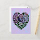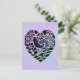 Arte popular con ánimo gótico - un pájaro negro estilizado en un corazón hecho de flores púrpura rojas y hojas verdes ácidas. Basada en un patrón de tejido vintage, la imagen se pintó digitalmente y se mejoró para esta presentación de la cámara.