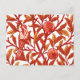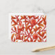 Postal en un patrón de tapiz Art Nouveau William Morris de aves exóticas en un árbol granado, con hojas de mandarina y naranja de coral profundas, aves y fruta en naranja y blanco, y fondo blanco cremoso