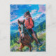 Escena cautivadora al estilo manga de un jinete que explora paisajes alpinos exuberantes bajo un cielo brillante. Una mezcla perfecta de naturaleza, belleza y aventura.