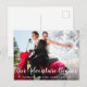 Tarjeta postal de foto de boda de novia y novio Nuestra aventura comienza Gracias