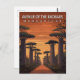 Embark on an exotic journey with this stunning Avenue of the Baobabs Madagascar Travel Postcard. This design captures the iconic, towering Baobab trees lining a rustic road under a breathtaking African sunset.
