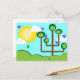 Postal Aves azules, árboles verdes y sol