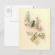 En esta postal se encuentra el precioso arte botánico vintage de las aves exóticas tropicales Hummingbird y las flores de hábitat.