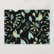 Diseño manual de arte folclórico inspirado diseño de lindos pájaros y flores en azul y verde sobre un fondo negro. Elegante y único.