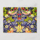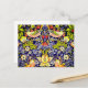 Postcard con el diseño textil de William Morris Strawberry Thief (1883). Cuatro pájaros coloridos roban fresas en medio de un vibrante fondo floral. Un regalo maravilloso para los amantes de los animales y los aficionados al arte victoriano.