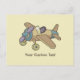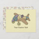 Avión de juguete de madera en paleta de color vintage. Texto personalizado. Patrón sin foco en la parte trasera.