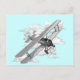 Diseño del arte del vintage de vuelo del biplano a través de los cloudss