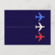 Planos azul, blanco y rojo alineados con rutas punteadas