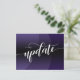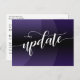 El fondo se ha cubierto en un trío de curvas violetas con un tenue revestimiento negro oscuro. Utilizando un tipo de letra de guión de bonito con remolinos y ondas, he creado un gráfico que dice "actualización". El reverso incluye marcadores de posición de plantilla para sus detalles con acentos coincidentes con el tipo de letra de caligrafía. Utilice estos campos de plantilla para agregar sus datos personales y cambiar mi redacción de borrador para adaptarlo a sus necesidades y situación. Hay otras piezas disponibles en el set y estoy encantado de crear variaciones adicionales bajo petición. // 99 //