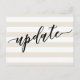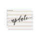 Utilizando un tipo de letra de escritura a mano que es el tipo correcto de desorden, creé un gráfico que representaba "actualización". Esto aparece sobre un patrón de franja blanca y crema suave. El fondo se superpuso con un gráfico de franja blanca que permite mostrar el color elegido. Sólo cambia el fondo a cualquier color que prefieras, si quieres algo diferente. El reverso incluye marcadores de posición de plantilla para sus detalles con acentos coincidentes con el tipo de letra de caligrafía. Utilice estos campos de plantilla para agregar sus datos personales y cambiar mi redacción de borrador para adaptarlo a sus necesidades y situación. Hay otras piezas disponibles en el set y estoy encantado de crear variaciones adicionales bajo petición. // 9 //