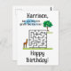 Un divertido rompecabezas de un laberinto de una jirafa que necesita ayuda para encontrar el árbol está impreso en postales personalizadas. El nombre del niño está en la parte superior, con la pregunta: ¿Puedes ayudar a la jirafa a encontrar el árbol? El laberinto está representado con una nube azul en lo alto, un árbol en múltiples tonos de verde y una jirafa parada en la hierba verde. Feliz cumpleaños está escrito debajo del rompecabezas. Todo el texto se puede personalizar fácilmente. Los niños pequeños apreciarán el detalle y la actividad adicional que pueden hacer en su cumpleaños. Gracias por comprar MazePuzzles en Zazzle.