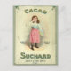 Sucard del antiguo Cacao — Azúcar de chocolate de Francia Ciertamente les encantaba su chocolate en la Francia victoriana. Sucard de cacao significa Azúcar de chocolate. La niña de edad te está dando un beso, un beso de chocolate. El pequeño chica vintage ama el chocolate. La imagen anticuada se imprimió originalmente en una lata de chocolate de 1900 —publicidad de chocolate vintage. El fondo es de color verde antiguo y blanco antiguo, mientras que la pequeña se pone de pie, y te da un beso. La imagen anticuada es una pequeña chica de pelo marrón que lleva su caja de chocolates. Lleva un lindo vestido azul y rosa. Este es el bello arte publicitario vintage perfecto para los amantes del chocolate.