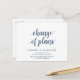 Este es el moderno diseño minimalista simple y limpio con el tema, en fuente azul de la Marina, invitación de fiesta de boda Postales reprogramadas (pospuestas/pospuestas) (cambio de planes) . Es la manera perfecta y elegante de hacer la invitación reprogramada a sus amigos y familiares.