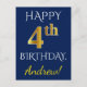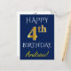 Postal Azul, Faux Gold 4º cumpleaños + Nombre personaliza