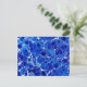 Postal de Marble Azul: este hermoso diseño colorido es un ejemplo de papel de mármol vintage reimaginado y revitalizado. Los colores azul y blanco se combinan con el diseño de tonos y tamaños aleatorios, como el agua y la espuma marina. La mármol de papel es un método antiguo de diseño de superficie acuosa, que puede producir patrones similares a los de mármol liso u otras piedras. Los patrones son el resultado de un color flotado en agua corriente o en una solución viscosa conocida como tamaño, y luego se transfieren cuidadosamente a una superficie absorbente, como el papel o la tela. A lo largo de varios siglos, la gente ha aplicado materiales de mármol a una variedad de superficies. A menudo se utiliza como superficie de escritura para caligrafía, y especialmente portadas de libros y documentos finales en encuadernación y papel. Parte de su atractivo es que cada impresión es un monotipo único que es extremadamente agradable a la vista.