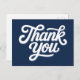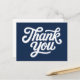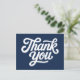 Una sofisticada tarjeta de agradecimiento con caligrafía blanca en negrita sobre un fondo azul marino, perfecta para expresar gratitud sincera con elegancia atemporal.