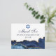 El elegante azul marino y el ágata dorada decoran el lateral de esta moderna tarjeta de felicitación de fiesta de Bar Mitzvah. ¡Mazel Tov! Personalízala bajo la Estrella de David. Tarjeta postal perfecta para una familia judía chic y elegante que celebra a un niño que es llamado a la Torá.