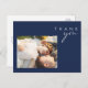 Postal Azul marino moderno | Silver Script Photo Gracias