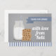 Postal Azul Moderno Galletas y Leche Rayado Gracias