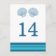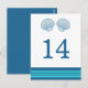 Elegante y clásico Nautical Sea Shells Número de Mesa Boda Postal con un par de conchas simples y un conjunto de rayas en azul marino oscuro y turquesa. Esta tarjeta de mesa con temática náutica se puede personalizar fácilmente con los detalles de tu boda. Para obtener más opciones de personalización, haga clic en el botón Personalizar.