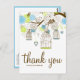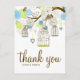 Invitación al personalizable con ilustracion de jaulas azules y verdes y variedad de flores con dos pájaros enamorados encaramados en un árbol con cuerdas de corazón colgantes.