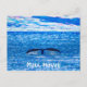 Esta tarjeta postal presenta una imagen de arte fractal de una cola de ballenas con Maui, HI en el fondo.