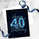 Cumplir 40 años no es poca cosa, es un momento para saborear, celebrar y gritar a los cuatro vientos. Esta tarjeta postal personalizable de cumpleaños número 40 es la forma perfecta de marcar la ocasión con estilo y sentimiento. El diseño emana sofisticación y brillo, con un '40' en negrita adornado con gemas azules deslumbrantes que brillan como un cielo estrellado. Un fondo azul marino rico añade profundidad y elegancia, puntuado por luces bokeh suaves y brillantes que establecen un tono festivo.