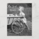 Postal B&W Photo Child Straining Mover Carro Nueva Direcc